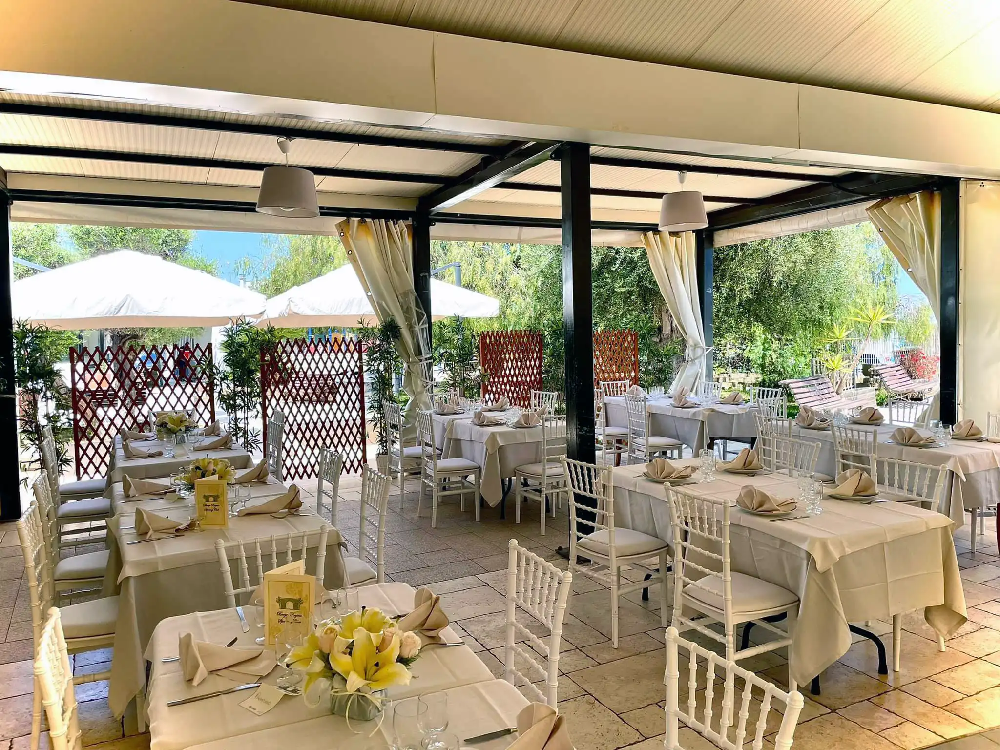 La saletta Ristò, climatizzata e circondata da vetrate, ospita fino a 50 commensali. La struttura inoltre offre un incantevole giardino e spazi riservati per il relax all’aperto.